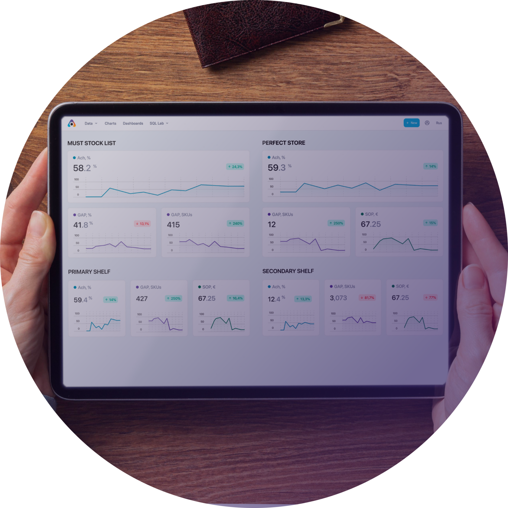 Por ejemplo, controlan el % de disponibilidad por góndola primarias y secundarias, planifican las auditorías a las farmacias por parte de los representantes de ventas, las tendencias de los precios y el rendimiento de los precios en el punto de venta.